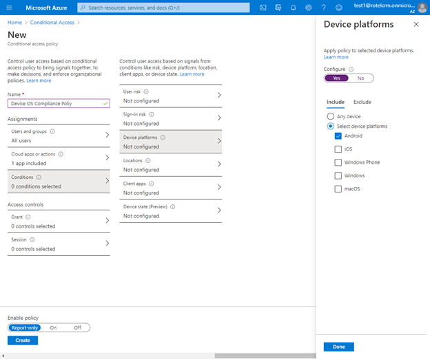 Let us take an example to see it in action, here we will restrict users from accessing Dynamics 365 App from devices running on Android OS.