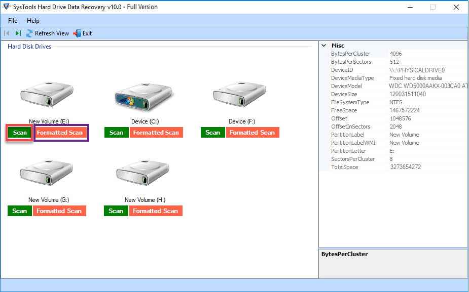 - Formatted Scan:- You need to select this option when you need to recover formatted data.