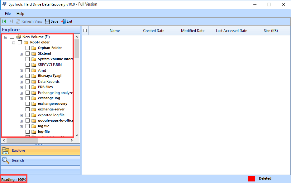 - This software shows permanently deleted data in red color so that it will be easy for the user to differentiate between deleted and permanently deleted.