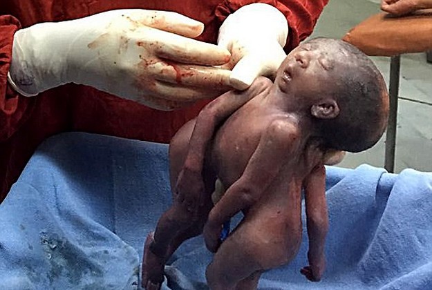 The shocking pictures showed Siamese twins born with a single face in India. Each of the babies had their own heart, legs and arms. They weighed 2lbs and 6oz in the Gujarat, eastern India.